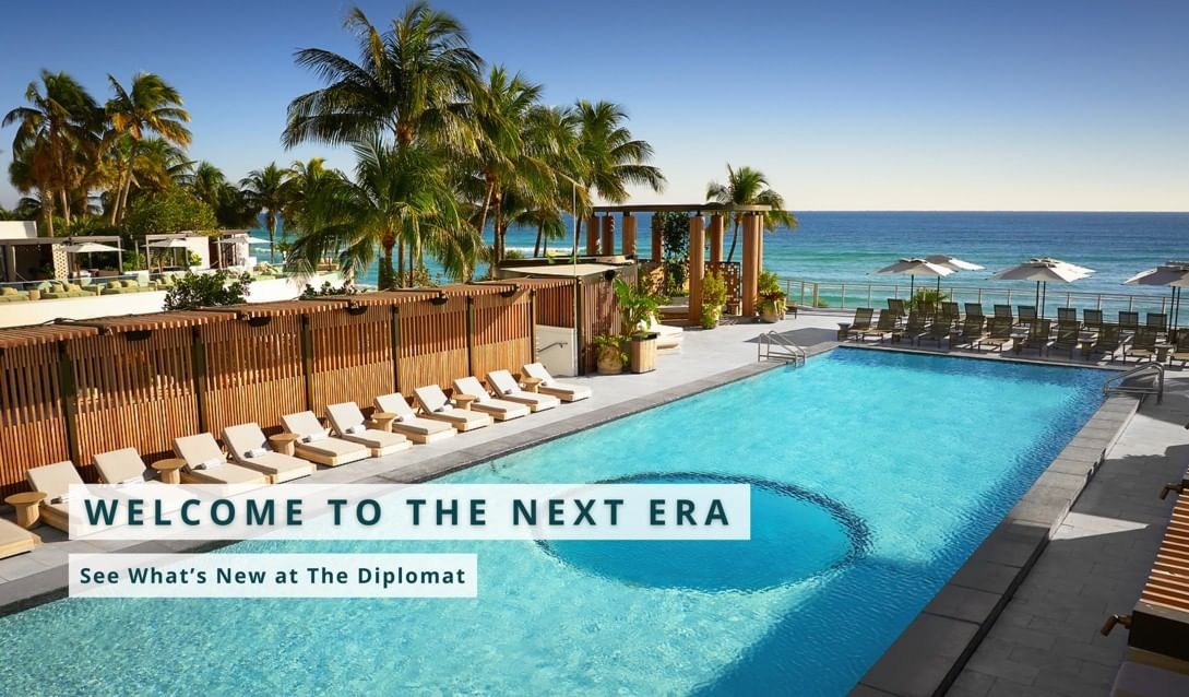 The Diplomat Beach Resort, Curio Collection by Hilton is South Florida's pristine beachfront destination conveniently located between Fort Lauderdale and Miami, in Hollywood, Florida. This resort pairs breathtaking ocean views, with modern design, inspired restaurants, and stunning pools and amenities.