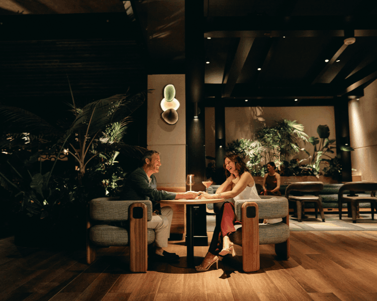 • Lush hotel bar featuring handcrafted cocktails