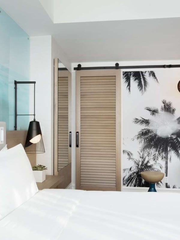 Stepping inside this serene, tropically inspired setting feels less like an arrival and more like an occasion. A dramatic living room with floor-to-ceiling windows, a dining area set for five, a dedicated workspace, and a food-prep area combine in a flowing layout made for beachfront living. The private king bedroom is a true sanctuary, with an expansive walk-in closet and breathtaking Atlantic views that greet you each morning with the Florida sun. The en suite bath features a deep-soaking tub overlooking the water, a separate glass-enclosed shower, luxe robes, and elevated amenities. A second adjoining room with two double beds, a full bath, and its own stunning oceanfront view means there’s plenty of room for everyone.